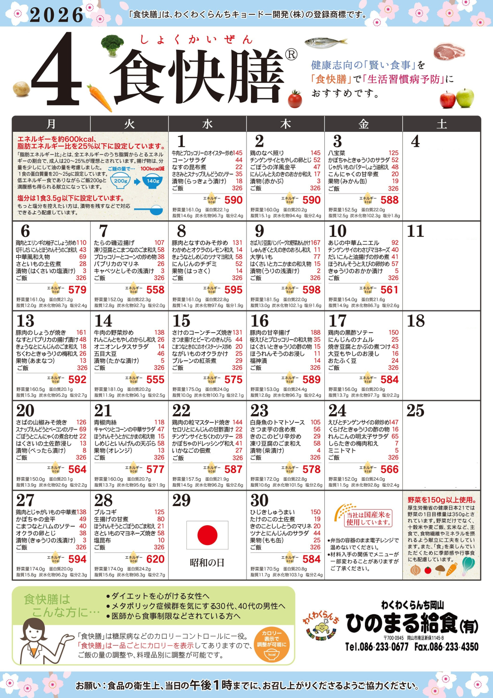 | 事業内容 | 産業給食(事業所給食)・会議用・行楽弁当・仕出し料理・出張イベント・在宅食 |
